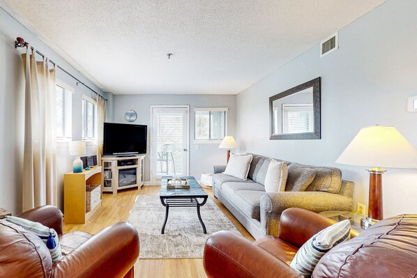 Cooled by central air, the interior of your villa boasts plush furnishings, modern appliances, and coastal decorations. When you aren't dining out, the well-equipped kitchen presents a clean space to play chef. When all you want to do is relax, kick back on the living room's leather seating and tune into your favorite TV show or movie. A second smart TV is available in the primary bedroom.
