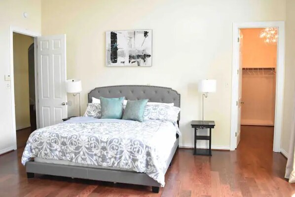 In the heart of downtown, this home offers a warm welcome with keyless entry and comfortable beds in each spacious room. Unwind on the rooftop patio or 2nd floor balcony, both offering a beautiful view of Houston's skyline. A fully stocked kitchen and dining area invite relaxation.