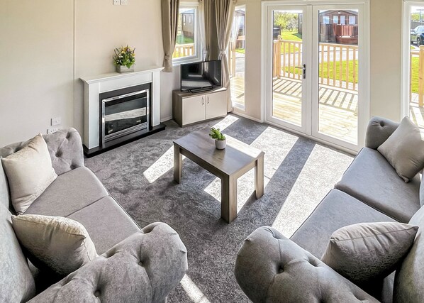 New in for 2023. The Heaton Lodge is perfect, whether for a cosy couples retreat, or to enjoy with the whole family. This contemporary lodge offers open-plan living, with stylish sofas, an electric stove fire and large south facing decking. The kitchen includes an oven, microwave and fridge/freezer. The Heaton Lodge also has the luxury of it’s own high speed broadband and Smart TV. The master bedroom is fitted with a comfortable king-size bed, made up for arrival. It also as it’s own walk-in wardrobe, toilet and basin. The second bedroom has two single beds. All beds have high quality mattresses. the lodge also has a family shower room, with a spacious walk-in shower.. Set amidst unspoilt views of the rolling East Yorkshire countryside, this charming, family-run park offers a peaceful retreat for those looking to relax and unwind. Nestled on the edge of the quiet village of Tunstall, the park enjoys a wonderfully tranquil setting yet is just a five minute drive from the traditional seaside charm of Withernsea.
