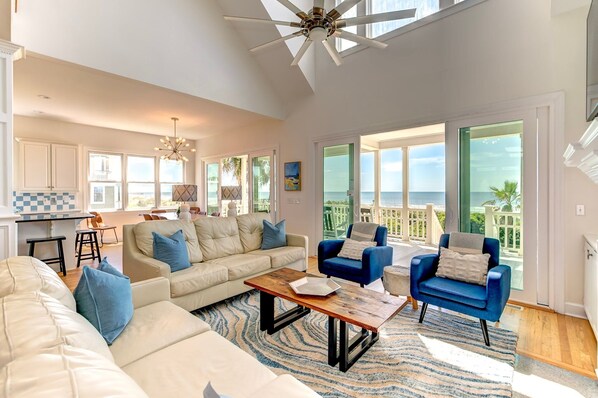 'Seascapes' 714 Ocean Blvd, is a classic oceanfront home located in the prestigious Ocean Blvd. side of the island which places the beach just steps from your porch and back yard. Walk just three blocks to the variety of dining options and stores located at the "front beach" downtown of Isle of Palms. This home has six bedrooms and four bathrooms as well as a multiple oceanfront porches and a private pool. The home has three king bedrooms, a room with a queen bed, a room with two bunk beds (Twin over Double) and a room with two double beds that is inside the upstairs king bedroom and shares a bathroom. Three of these King bedrooms have spectacular ocean views and porch access. The bathrooms were just renovated to include large walk-in showers and beautiful tile work. .
