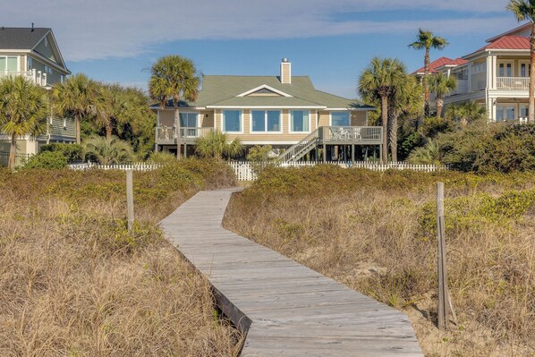 Private boardwalk leading directly to the beach.