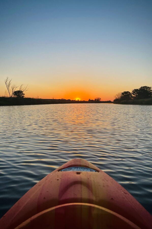 Nestled in the heart of nature, The Bunkhouse is a cozy retreat that sleeps three. It features a queen bed and single bed, high-speed internet, pellet grill and en-suite toilet and shower. Ideal for those who enjoy kayaking or stargazing.