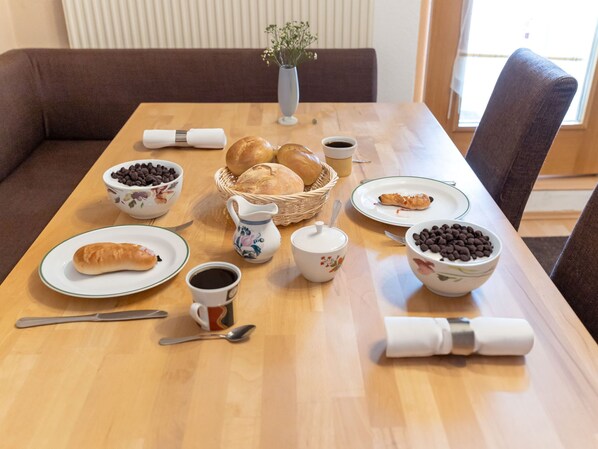 "Al Vietta", 3-room apartment 70 m2 on 1st floor. Bright, practical furnishings: living/dining room with dining nook and satellite TV. 1 room with 1 double sofabed, 1 double bed, hand-basin and satellite TV. Exit to the balcony. 1 room with 1 french bed (150 cm), hand-basin and satellite TV. Kitchen (oven, 4 ceramic glass hob hotplates, toaster, kettle, microwave, freezer, electric coffee machine). Shower, sep. WC. Heating. Balcony. Facilities: baby cot. Internet (WiFi, free). Please note: non-smokers only. Smoke alarm, fire extinguisher.