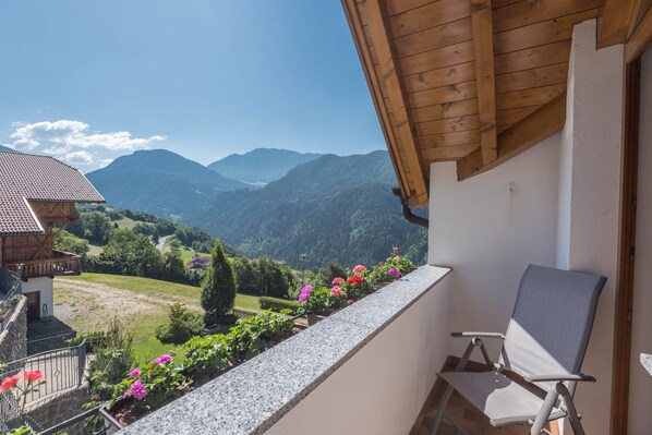 The beautiful apartment “Apartment Sella” is part of the apartment building “Unterkehrhof”, a typical South Tyrolean house at the beginning of famous Gröden Valley (Val Gardena), in central position close to renowned sights like the alpine pasture Seiser Alm. The apartment consists of a living room with a sofa bed, a well-equipped kitchen with a dishwasher, 2 bedrooms as well as 2 bathrooms and can therefore accommodate 6 people. Enjoy morning coffees on your private balcony, while looking upon the surrounding mountains and the scenic valley. Additional amenities include Wi-Fi, cable and satellite television, a baby cot and a highchair. A washing machine is available upon request. The outdoor area impresses with a shared garden and open terrace. You can play table tennis or use the public barbecue to prepare your own meals. Your children will be delighted to see the playground with swing, sandbox and playing house. In the area there are a lot of walking and hiking paths through an untouched nature. Bike lanes for families, but also downhill lanes can be found in the area. There is a bus stop only 200 m (4 minutes on foot) from the building. The town of Lajen is only a 4-minute drive from the property (2.2 km). There you will find shops, restaurants, bars and cafés. In the fall you can easily reach the historical "Bauernhöfe" (farms) within 10 minutes on foot (700 m) where you can enjoy the Törggelen, the season for chestnuts and wines in South Tyrol.