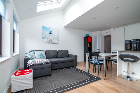 Inside, you'll find the area is superbly lit by the natural sunlight that pours in from the skylight and large windows. Additionally, you'll find the apartment is also kitted out with all the modern amenities and luxuries needed for a comfortable stay, including: