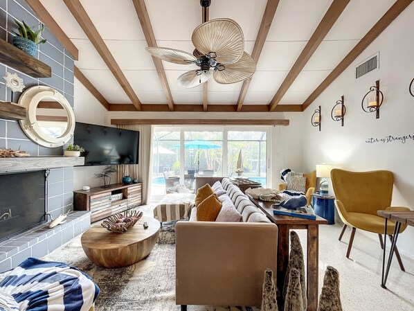 Fully screened back patio with tons of comfy seating provides ample space for indoor/outdoor living.