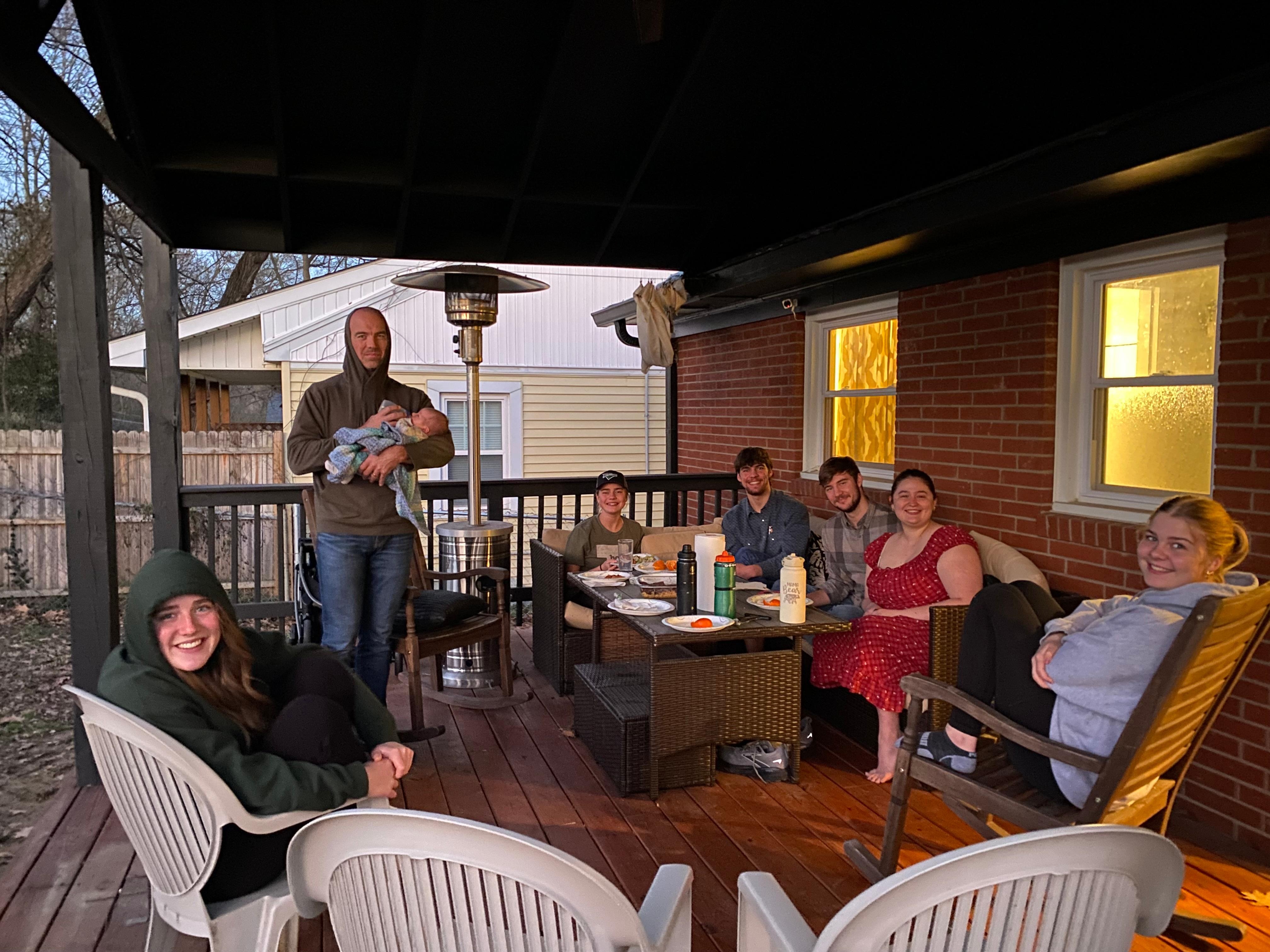▻ Outdoor furniture/ seating area overlooking the backyard