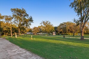Each site includes water and electricity hookups, and you’ll find plenty of shaded picnic tables, BBQ grills, and clean, modern public restrooms and showers nearby.