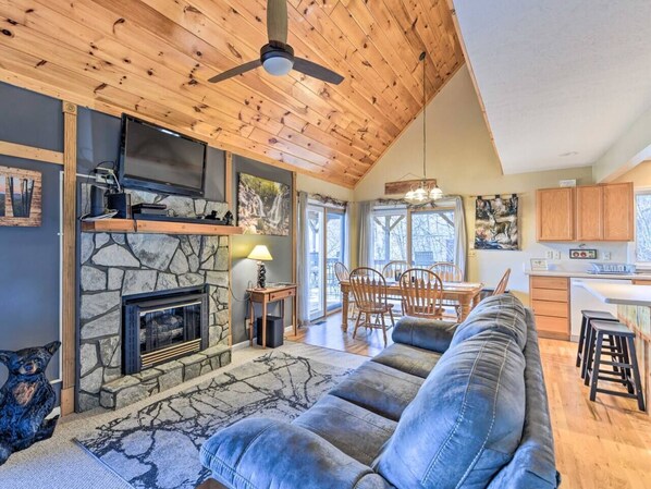 With high speed WiFi, TVs in all the bedrooms, a gas log fireplace, fully stocked kitchen, comfortable furniture, and wonderful cabin decor, this lovely home has everything you need.