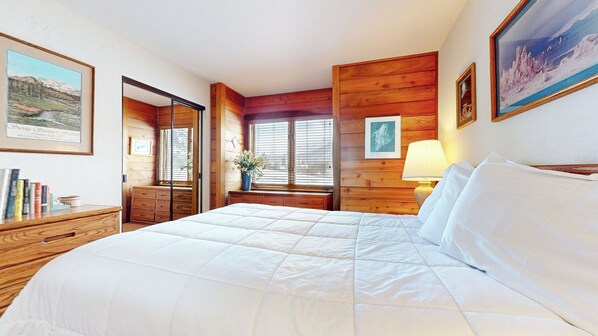 We had a wonderful family gathering here. We have stayed in many places in Snowcreek, and this location was the best - right on the meadow with great mountain views. Plenty of room for us to spread out, well equipped kitchen, nice out door patio and balcony. Appreciate being able to bring our dog. A few issues need addressing - some of the window screens broken, some window stuck closed. The living room furniture a bit worn, but serviceable. The mattress in the second (middle) bedroom could do with replacing.