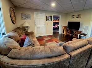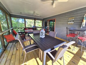In the heart of lake living, Livin' the Lake Dream home offers a tranquil retreat with nautical decor and scenic views. Take in the peaceful atmosphere from the large screened porch or enjoy outdoor activities like fishing and swimming. With an open floor plan, fire pit, gaming tables, arcade hockey table and ping pong tournament options - there's something for everyone to enjoy together.