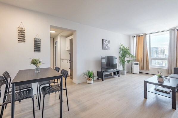 Enjoy high-speed Wi-Fi, a smart TV, heating, and air conditioning, making it perfect for both short and extended stays in downtown Montreal.