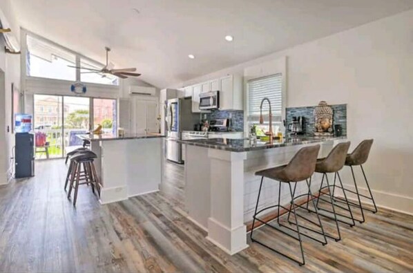 Enjoy outdoor dining and entertaining on the property with two separate covered grilling patios, each with a gas grill and seating for plenty. This is perfect for outdoor dining and cookouts while visiting! kayaks, crabbing gear, life jackets, and fishing rods are all available for guest use during your stay