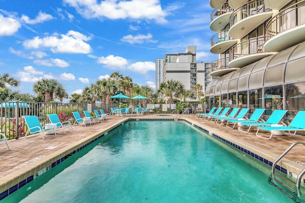 Welcome to this glamorous oceanfront condo in downtown Myrtle Beach, perfect for a couple or small family getaway. Enjoy an unobstructed ocean view from the balcony and easy access to shopping areas and attractions nearby. The fully stocked kitchen has everything you need, while the complex offers shared indoor & outdoor pools, an indoor hot tub, and direct beach access.