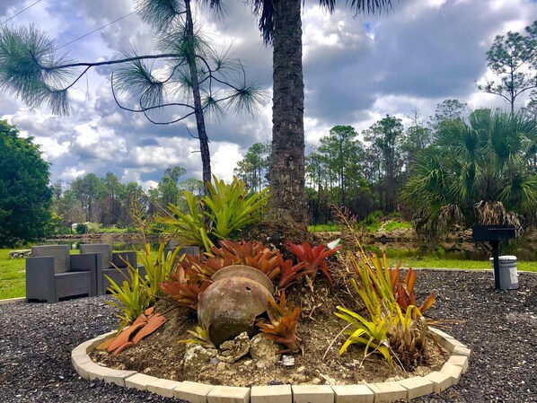 The Sunset Hide A Way Entire Guest House sits on a quiet canal where wildlife thrives. Guests have access to kayaks for exploring the waterways of the everglades. After a day of adventure, the fire pit offers a perfect spot to relax as evening falls.