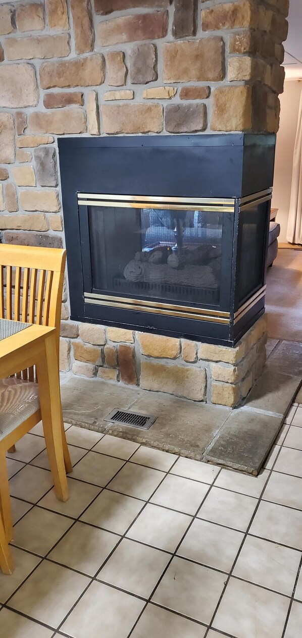 Enter the large sunroom with many windows to find a light and airy sitting area and casual dining spot. Also on this same level is a bright and cheerful bedroom with beautiful views of the four-acre forested setting. Step up to the next level and make yourself at home in the family room with beautiful views. An interesting three-sided fireplace with gas logs separates the living room from the eat-in kitchen. Watching your favorite show on the 50" LED TV, equipped with local channels and netflix, and DVD, or reading the latest issue of the local newspaper, "The Brown County Democrat" is a relaxing way to spend a lazy morning. Cooking in the fully equipped kitchen or outdoors on the charcoal grill will take care of one's hunger pains but remember how we said you're only 5 minutes from town? Here's a phrase we've found to work well when the spirit's willing but the flesh is weak: "Honey, please. Take the keys. Get pepperoni & extra cheese!"