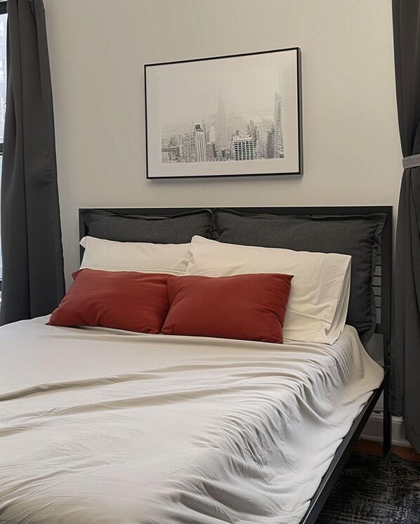 Additional amenities include high-speed Wi-Fi, in-unit washer and dryer, air conditioning and heating, and an iron and ironing board, making the apartment well suited for both short-term and extended stays.