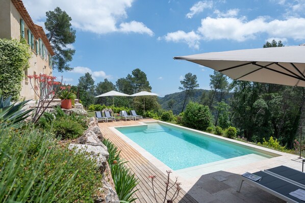 Freestanding villa with a private saltwater pool, spacious terraces, and breathtaking views, located near Tourrettes-sur-Loup.