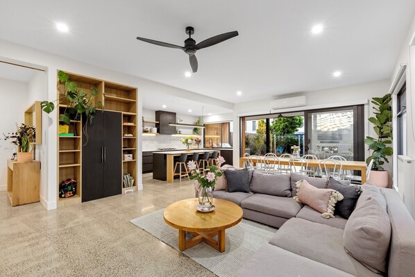 This stylish four bedroom house is located in the heart of Ocean Grove. The kitchen is complete with stone benchtops and a butler’s pantry. One of the Master Bedrooms is located on the ground floor with a generous laundry and powder room completing the lower level. Upstairs, the family room opens onto a balcony, where you can watch sunsets during the evening. The second Master Bedroom creates a private retreat for parents, with a fully-fitted walk-in robe and stunning ensuite.