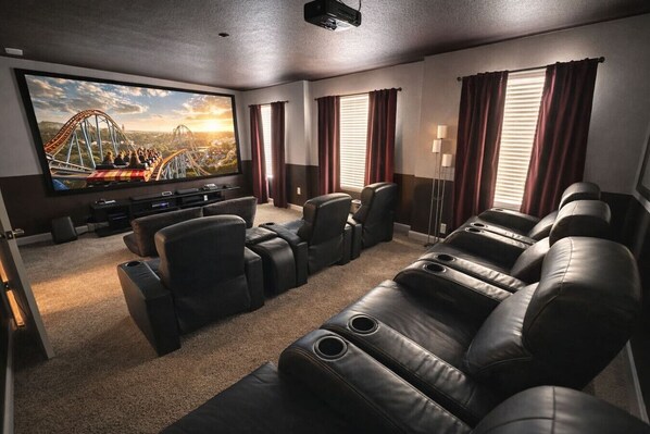 The house was wonderful. It had enough bedrooms and bathrooms to accommodate our large group. We had some fun movie nights in the theater room. The house was perfect.