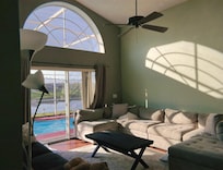 Beds were all stained duvets and dirty sheets we went to Walmart and bought sheets. Blinds were broken and missing blades on almost every window. Roaches, what google lens called ghost ants and geckos roaming all through the house overall lack of cleaning when we cleaned up on our way out it was cleaner than when we got there.! We had fun in Florida unit it was time to go home and sleep amongst the creepy crawlers. I had to beg my wife not to leave on MONDAY because she couldn’t sleepThe pool was inaccessible do to the slider that almost wouldn’t move we went out of the front door walked through. The side yard into the pool enclosure to get to the yucky pool and padlocked grille