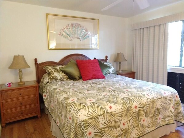 Kathryn - 2/8/18 Situated between Kona and Hilo, away from tourists and commercialism, this is a great condo. Looking past the green golf course from the back patio is the beautiful blue of the Pacific. You can hear the waves crashing against the rock, which was so incredibly relaxing at night. Depending on how fast you walk, Black Sands Beach is just 5 minutes away and each time we visited, we were awed by the sea turtles that bask in the sun on the black sand. Although the waves were too rough for us to snorkel or swim (we were there in January), there is a lifeguard for others who are more experienced and daring. The condo was what we expected and was clean and had all basic kitchen and bathroom needs. The one bedroom is spacious with an adjacent bathroom, and the only bathroom in the condo. It was also nice to have access to the condo's washer and dryer and traveling with kids is dirty business! My younger son and I slept on the pull out sofa bed and found it to be not only easy to pull out and put back, but surprising comfortable. Plus, sleeping on the sofa bed meant that we were closer to the sounds of the crashing waves against the rock...not a bad exchange for an actual bed at all! We did not use the pool but it looked inviting. The grounds were kept clean and the office staff was friendly and helpful. Although I'd make sure you keep all doors closed due to uninvited bugs, sitting out on the patio made for some adorable guests. Tiny birds littered the green grass while the occasional gecko or two would casually scamper by. If you're into hiking, I'd also recommend taking a drive to Green Beach's parking lot (about a 20-25 minute drive away) and taking a gorgeous 5.5 mile round trip hike along the ocean before reaching Green Beach. Even if you're not into the hike, the locals are waiting to take people to the beach's cliff area (you have to walk down a steep hill to get to the actual beach) in their 4X4's for a fee (not sure how much since we didn't do it). However, be warned--there are no bathroom AT the parking lot or the hike or Green Beach. There were also no garbage cans that we could find, so just be aware. On your way out of the parking lot, just before highway 11, don't forget to stop at Hawaii's Local Buzz "farm". You can sample and buy delicious locally made coffees & seasoned or chocolate covered macadamia nuts, get water, and perhaps more importantly, meet their super cute tropical birds! There is also a deli/ice cream/souvenir store not far from the condo that professes to be located at the most southern tip of the US. You can sit outside and eat or take your food to the beach, as we did. As I said before, this condo is a great...