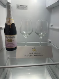 For celebrations such as Birthday or Anniversary, we'll have a chocolate or yellow cake (your preference) under a glass dome waiting on the kitchen counter as you walk in. Alongside, will be birthday plates, a banner, and a customized card. All for a total of $30 plus tax.