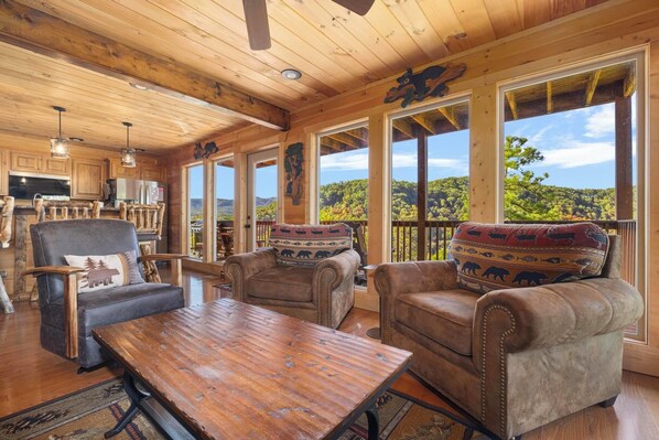 Country Cozy's living room is the perfect place to kick back and relax. Gather around for a game of cards, watch a movie on the large flat screen, or just cozy up next to the natural gas fireplace. We are sure you won't forget the good times spent here!