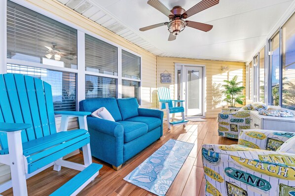 Bask in the Gulf breeze from the air-conditioned sunroom or large balcony, where water views and stunning sunsets inspire unforgettable moments. With pristine beaches just steps away—perfect for shelling, bird watching, and surf fishing—your days will be filled with wonder.