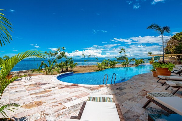 Luxurious condo with large oceanfront balcony and pool with view