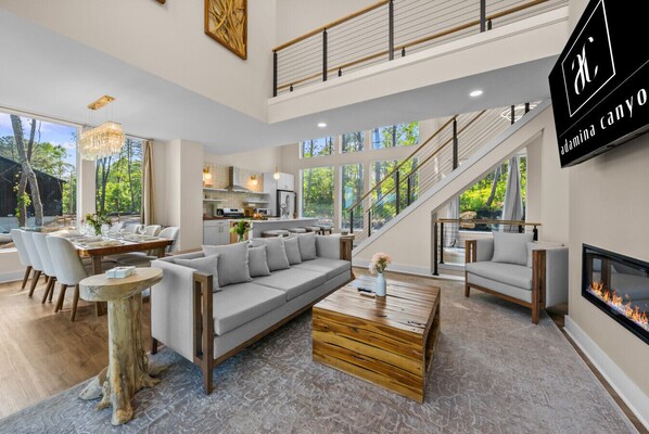 This luxurious brand new villa is nestled in the Heart of Hocking Hills overlooking Adamina Canyon. Experience a Colorado mountain villa right here in Ohio, while enjoying 100 acres of private serenity, vistas & picturesque landscape. With exceptional amenities such as 2 overlook decks, a 7-person hot tub, outdoor dining with motorized bay screens & fans, a propane fire bowl, along with plenty of indoor living space! This Villa offers 4 free parking spots with extra shared parking if needed!