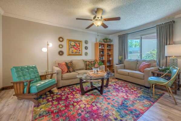 A firepit, a garden, and laundry facilities are just a few of the amenities provided at Casa Feathergrass. Guests can connect to in-room WiFi.