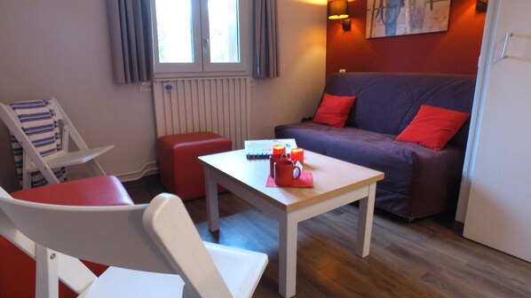 The VVF Saint-Lary-Soulan Hautes-Pyrénées is located 800 m from the resort of Saint-Lary-Soulan, and 1 km from the cable car providing access to the Pla d'Adet ski area. A free municipal shuttle 600 m from the village takes you to the cable car. This VVF includes 80 apartments, with 2 or 3 levels for 4 to 7 people, divided into 8 terraced pavilions on the mountainside (with many stairs, not recommended for people with motor difficulties). Surface area : about 55 m². Level 0 : Living room. Bedroom with double bed (140*190). Kitchenette with 2 cooking rings, fridge. Shower room. Level 1 : Living room with BZ-sofa (140*190). Alcove with single bed (80*190), 2 bunk beds (80*190). Shower room with WC. The beds in elevation are not suitable for children under 6 years.