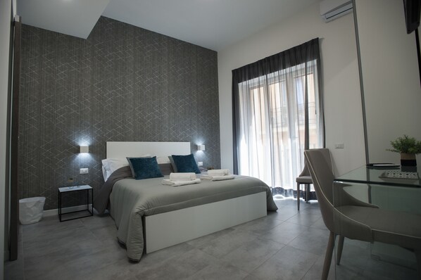 デラックス ルーム キングベッド 1 台 シティビュー | エジプト綿のシーツ、高級寝具、羽毛の掛け布団、低反発ベッド