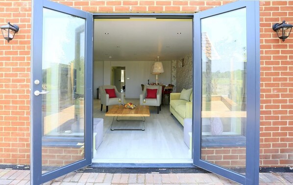 The holiday home has a gorgeous traditional brick exterior but a contemporary style inside that everyone will fall in love with. The open-plan living area is flooded with light thanks to large patio doors that look out onto the marshes; sit on the sofa here in the morning and take in the views. You can still get cosy though – snuggle up in front of the TV and ornamental fireplace in the lounge and watch your favourite film. Upstairs, three fantastic bedrooms await; the king-size room is the one to nab with its superb glass doors that you can throw open and stand at the Juliet balcony. Each room has its own unique style but all promote a good night’s sleep with calming pastel and grey tones.