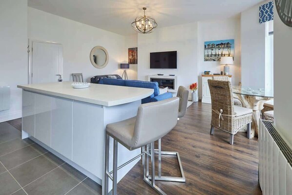 The Little Lobster benefits from a spacious open plan kitchen, living and dining room. Perfect for relaxing and socialising with your loved ones, this space is both modern and homely.