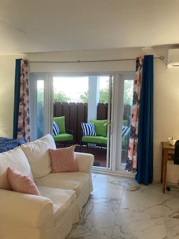 Ms. Claudette welcomed me as I arrived. She showed me all the amenities and gave instructions on how to use AC and TV. This was a most pleasant stay with outside partial views of the ocean on 2 sides. I would definitely stay here again.