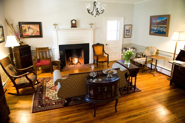Guests explore the nearby Copper Fox Distillery or relax by the fireplace at this welcoming retreat with its delightful garden near Shenandoah National Park