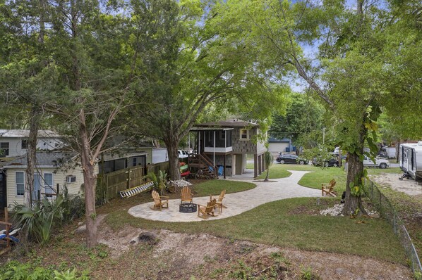 Nestled on the waterfront, The Pirate House offers a tranquil retreat with unique furnishings crafted from natural wood. Enjoy kayaking or relax by the fire pit on the patio overlooking the water.