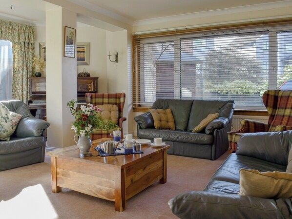Living room: Freeview TV, DVD Player, CD Player, Woodburner, French Doors To Garden
