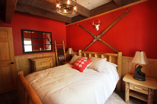 Bedroom 1: Queen-sized bed with plush bedding