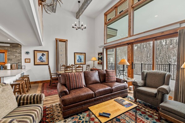 The main (middle) level has access to a deck with amazing views of the slopes and the NEW Electric Weber grill. It's perfect for relaxing with a cocktail after a great day on the mountain.
