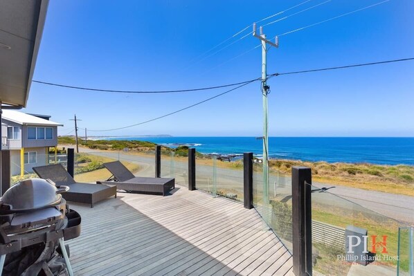 Relax in the living area with plush lounges, a 65" Smart TV. Step onto the deck for a barbecue experience amidst the sea breeze, witnessing the sun dip below the horizon with uninterrupted 180-degree views stretching from Cape Woolamai to Pyramid Rock.