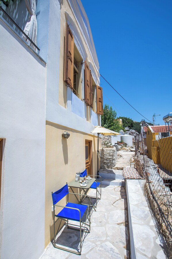 Riverfront apartment with patio, near Symi Port