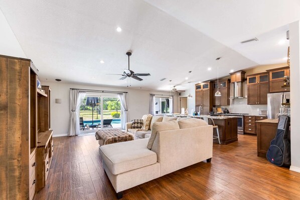 》Welcome to your Florida home away from home! This bright and comfy one-level house is the perfect spot to kick back, relax, and enjoy time with your favorite people. Whether you're cooling off in the private pool, sipping coffee at the custom bar, or squeezing in a quick workout — there’s something here for everyone.