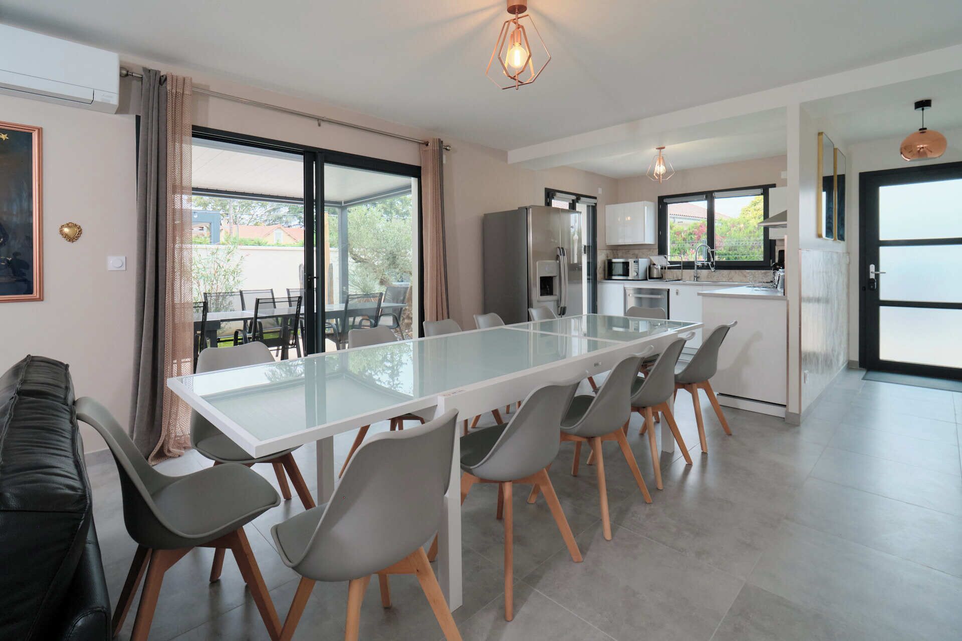 Discover our gîtes for five for 12 people, classified 3 stars at the Gîte de France: located in a quiet area on Tignieu Jameyzieu, close to all shops within a five-minute walk (restaurant, McDonald's fast food, Burger King, KFC , several pubs and stores, food, bowling, Lazer game cinema, basic fit, orange blue....The list is long) and a bakery–cafe very close to the house. Geographical location: Lyon center 38 km. OL Stadium, Groupama Stadium 25 minutes away, Saint-Exupéry Airport 20 minutes away, Eurexpo 30 minutes away, Crémieu medieval city 10 minutes away, you can do long mountain biking and hiking or horse riding trips, you are both quickly in the woods with ponds and not far from the city center of Lyon, an ideal place to visit the Rhône Alpes region 😀 The 135 m2 house consists of five bedrooms and 7 beds ideal for several families of up to 12 people, the cottage has a very large bedroom with 3 beds one in 160 x 200 and two others in 90 x 200 with a large connected screen, two chairs and a larger desk, and large format connected TV on an articulated arm. For the other rooms, the beds are 140X200 with connected TV. The cottage has a laundry room with washing machine and a dryer. There is also heating by heat pump, reversible air conditioning, and electric shutters, The kitchen is fully equipped plus kitchen utensils for cooking well, hob, oven, hood, dishwasher,you have free private parking spaces in front of the house, as well as wifi and fiber look carefully at the photos you will find lots of information there and if you have any questions send me an email and I will answer you, Kind regards, Frank the gîte at Place du Dauphiné
