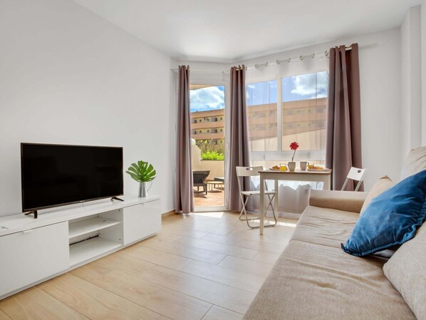 ★ Apartment on the groundfloor of Vistamarina Building, very close to the beach, with a beautiful TERRACE with SWIMMING POOL VIEWS, the KITCHEN is full EQUIPPED with everything you need, the LIVING ROOM includes a comfortable sofa convertible into a bed, the BEDROOM with a double bed and a wardrobe, BATHROOM with a shower. Includes sheets, bath towels, gel, shampoo, WIFI, oven, microwave, washing machine, kettle, coffee machine...