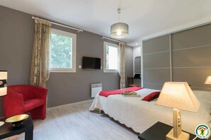 In a privileged setting in the middle of a private property of 21 hectares, this villa is a haven of peace with a wide-angle view of meadows, horses and woods, ideally located for visiting Toulouse and its region. It is 15 minutes from the center of Toulouse (10 minutes by metro) and secured by an electric gate with videophone. Private enclosed garden with terraces. Non-smoking cottage. Private SPA (from May to October), 3 terraces plus summer kiosk, 3 garden furniture sets, deckchairs, secure parking. Badminton, outdoor games room on the mezzanine with table football, ping-pong, various bowling games, swings and children's slide, sandpit, trampoline. Treehouse with games. For your short or long business or tourist stays or people looking for peace and relaxation. Many leisure activities and local services: walk in the woods, discover the animals on site (horses, donkeys, sheep, parakeets, pond, etc.), metro and shopping center 2 km away, bowling, ice rink, Calicéo water park, Cité de l'Espace, Golf, visit to Airbus, etc. Single-storey gîte: entrance into the living room, consisting of a lounge area (fireplace, large flat screen), a dining area and an open and fully equipped fitted kitchen (combined oven, dishwasher, etc.). Complete baby equipment, WC with washbasin, shower room (Italian shower) and pantry (washing machine, dryer, freezer). 2 bedrooms (1 double bed 160cm) (1 double bed 160cm). Air conditioning. Electric heating. Electric roller shutters. Teleworking: the large bedroom is equipped with a desk with a chair and a lamp. The house is equipped with a WIFI box and fiber Without a car: from the airport or the Toulouse train station, you are 30 minutes by public transport from the cottage: take the metro line B to Balma-Gramont, then the bus line n°103 towards Dremil le Colombier and get off at the Aufréry clinic stop, the cottage is 20 meters away.