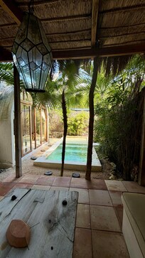 Villa Sanah offers a restorative escape minutes from Tulum Mayan Ruins. Guests can enjoy Swedish massages, a Turkish bath/hammam, or Ayurvedic treatments. The property features a cooked-to-order breakfast, an outdoor pool, and free self parking—all highly praised by visitors.