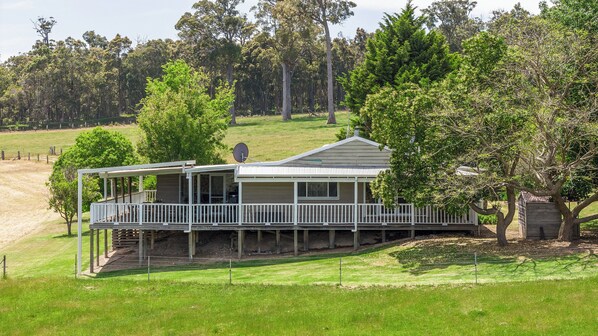 Escape to Hampshire Farmhouse, a beautifully appointed rustic retreat that invites relaxation. Indulge in wine tasting, cooking, and reading while taking in the view from the large verandah or cozy sitting area. With a gourmet galley kitchen, gas pizza oven, and slow burning wood combustion heater.